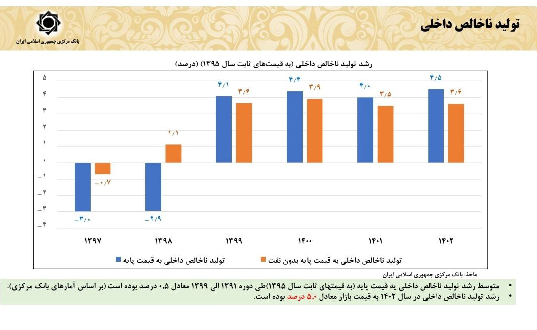این در حالی است که متوسط رشد اقتصادی کشور در دولت سیزدهم (از نیمه دوم ۱۴۰۰ تا ۱۴۰۲) به ۴.۵ درصد افزایش یافته است.