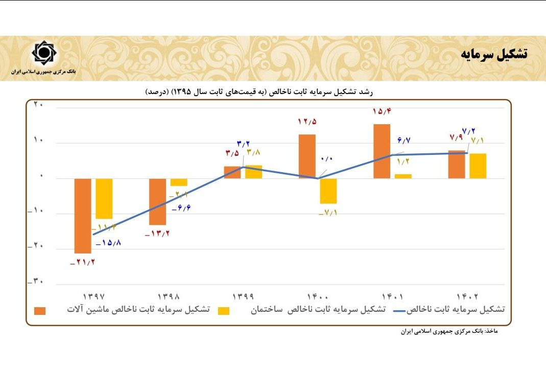 رشد تشکیل سرمایه ثابت که در دهه ۹۰ منفی ۷.۱ درصد بود در دولت سیزدهم به مثبت ۶.۴ درصد رسیده است.