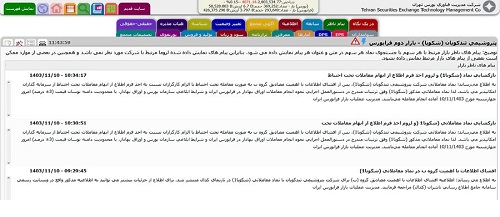 افزون براین، شرکت بورس تهران در اطلاعیهای خطاب به کارگزاریهای عضو اعلام کرده است: به منظور بازگشایی و انجام معاملات نمادهای زیر در بورس تهران، اقدامات لازم از سوی شرکتهای کارگزاری برای دریافت «بیانیه اطلاع از ابهام معاملات» از سهامداران پیش از دریافت سفارش و معامله نمادهای پتروشیمی انجام شود./سنا