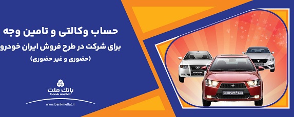 بانک ملت برای دور جدید فروش محصولات شرکت ایران خودرو، خدمت حساب وکالتی را به متقاضیان ارائه می کند.