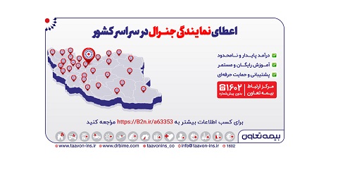 شرکت بیمه تعاون به منظور توسعه شبکه فروش و ارائه خدمات گستردهتر به مشتریان، در سراسر کشور نمایندگی اعطا میکند.