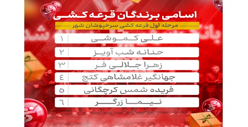 اسامی برندگان مرحله اول قرعه کشی جشنواره «سرخپوشان شهر» بانک شهر بدین شرح است:
