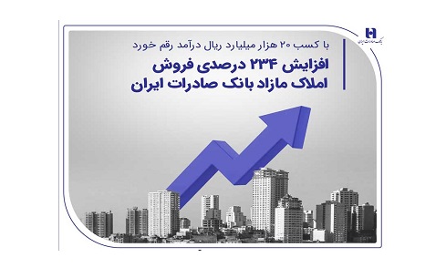 درآمد بانک صادرات ایران از محل فروش املاک مازاد از ابتدای سال ۱۴۰۳، بیش از ۲۰ هزار میلیارد ریال رسید و افزایش ۲۳۴ درصدی را رقم زد.