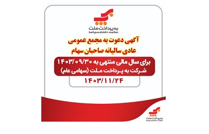 برپایه این گزارش، علاقه مندان برای اطلاع از متن کامل آگهی دعوت به مجمع به پرداخت ملت اینجا را کلیک نمایند.