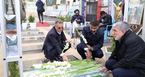 اعضای هیات مدیره بانک مسکن در سفر به استان کرمان با حضور در گلزار شهدای کرمان به مقام شامخ سپهبد شهید سردار حاج قاسم سلیمانی وشهدای انقلاب اسلامی ،دفاع مقدس ومقاومت ادای احترام کردند.