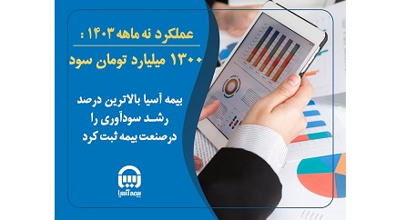 این گزارش می افزاید: بیمه آسیا با مدیریت مطلوب مالی و سرمایه گذاری، افزایش قابل توجه حجم عملیات بیمه گری، ریسک سنجی مناسب، اصلاح ترکیب پرتفوی به سمت رشته های سود آور و بیمه های زندگی، نظارت و کنترل دقیق، کاهش نسبت خسارت و همچنین با توجه به افزایش اعتماد بازار به عملکرد این شرکت، توانست ضمن ارتقاء سهم از بازار بیمه ای به میزان ۱۰٫۴ درصد، سود آوری ارزنده ای را در نه ماهه امسال به نمایش بگذارد و بالغ بر ۱۳ هزار میلیارد ریال سود شناسایی کند.
