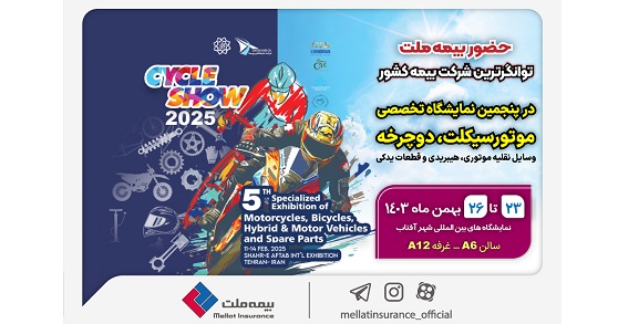بیمه ملت، توانگرترین شرکت بیمه کشور، در پنجمین نمایشگاه تخصصی دوچرخه، موتورسیکلت، وسایل نقلیه موتوری و هیبریدی و قطعات یدکی حضور فعال دارد.