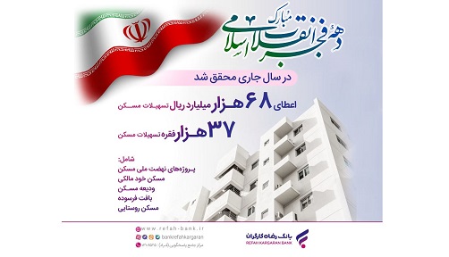 گفتنی است، بانک رفاه کارگران از ابتدای اجرای قانون جهش تولید مسکن تاکنون بیش از ۱۲۳ هزار میلیارد ریال تسهیلات در این بخش پرداخت کرده که بالغ بر ۸۷ هزار واحد مسکونی با استفاده از این تسهیلات احداث و یا در حال احداث است.