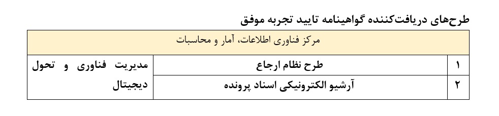 به گفته مشیری تبریزی فهرست طرحهای تجربیات موفق سازمان تأمین اجتماعی و جوایز دریافتی آن مرکز به شرح زیر است: