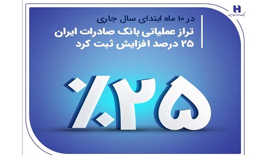 تراز مثبت عملیاتی بانک صادرات ایران در۱۰ ماه منتهی به پایان دیماه سال جاری نسبت به ۹ ماه ابتدای سال، با ۲۵ درصد رشد روبرو شد.