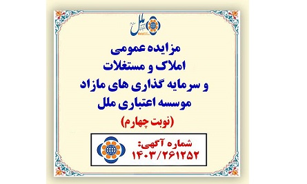 مؤسسه اعتباری ملل با برگزاری مزایده عمومی املاک و مستغلات مازاد خود را به صورت نقد و اقساط به فروش میرساند.