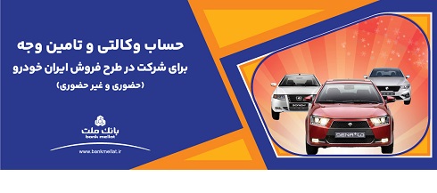 به گزارش فراسو به نقل از روابط عمومی بانک ملت، متقاضیان خرید محصولات ایران خودرو می توانند تا ساعت ۲۴ روز پنج شنبه ۲۵ بهمن ماه از طریق مراجعه به شعب یا پیشخوان الکترونیک بانک ملت نسبت به وکالتی سازی و تأمین وجه ودیعه در حساب بانکی خود اقدام کنند.