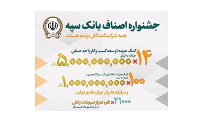 واجدین شرایط از جوایز تخصیص یافته در قرعهکشی ۱۴ جایزه ویژه کمک هزینه توسعه کسب و کار واحد صنفی هر یک به ارزش پنج میلیارد ریال، ۱۰۰ کمک هزینه راهاندازی کسب و کار مجازی هریک به ارزش یک میلیارد ریال، میلیاردها ریال جوایز نقدی و امتیاز استفاده از ۲۱۰۰۰ فقره تسهیلات بانک سپه، بهرهمند می شوند.