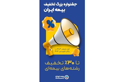 جشنواره بزرگ تخفیف بیمه ایران تا ۳۰ درصد تخفیف رشتههای بیمهای از اول اسفند ۱۴۰۳ تا پایان فروردین ۱۴۰۴ اجرا می شود.