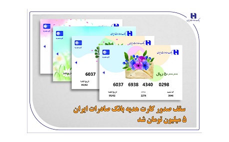 سقف صدور کارت هدیه بانک صادرات ایران به ۵ میلیون تومان افزایش یافت.