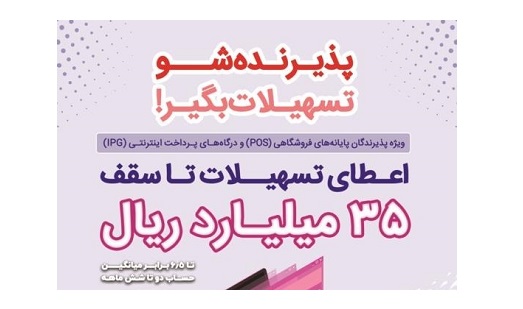 تسهیلات در قالب بسته اعتباری “ویژه پذیرندگان جدید درگاههای پرداخت اینترنتی” نیز برحسب مبلغ تراکنش پایانه یا پایانهها تا سقف ۲۰۰ میلیارد ریال به پذیرندگان جدید واجد شرایط پرداخت میشود.