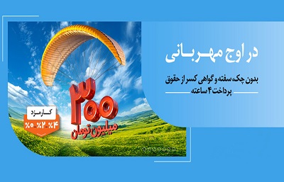 طرح«مهربانی ملی» بر اساس میانگین کمترین مانده در گردش حساب متقاضی محاسبه می شود و تا سقف مبلغ ۳۰۰ میلیون تومان وام به مشتری اعطا می شود .