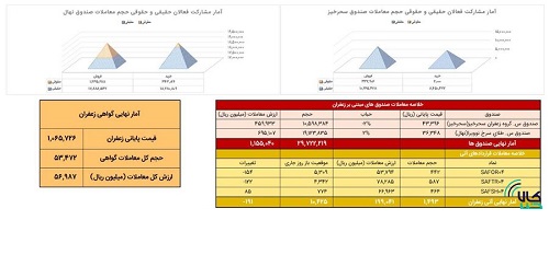 در معاملات گواهی زعفران نیز ۵۳ هزار گواهی ثبت شد و ارزش معاملات به ۵.۶ میلیارد تومان رسید./کالاخبر