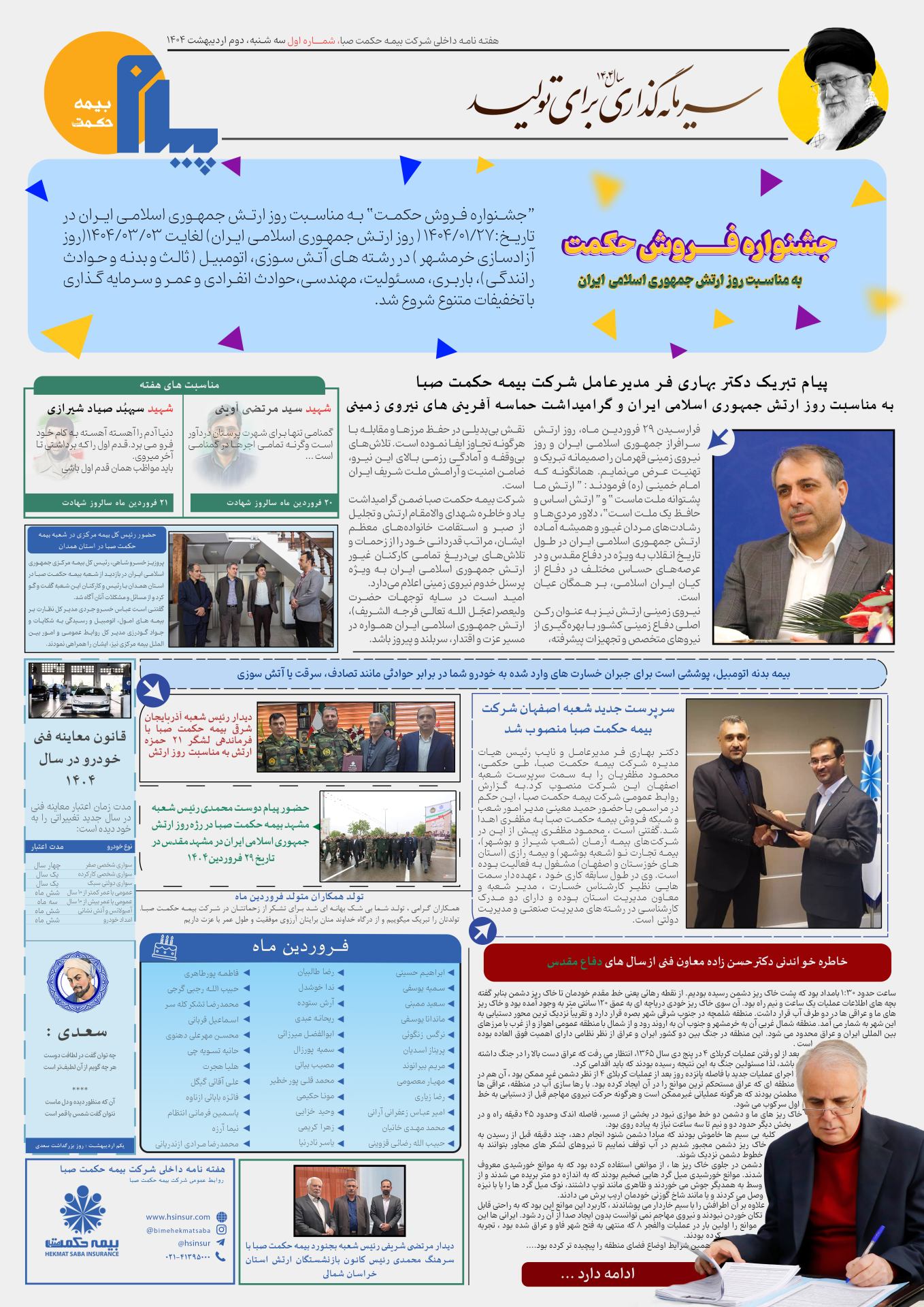 اولین شماره هفته نامه الکترونیکی بیمه حکمت صبا با نام “پیام بیمه حکمت” به مناسبت فرا رسیدن روز ارتش جمهوری اسلامی ایران منتشر شد.