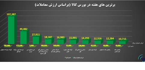 به گزارش فراسو، برترین های بورس کالای ایران درهفته منتهی به ۲۹ فروردین ماه براساس ارزش فروش شرکت ها در بازار فیزیکی به شرح زیر است: