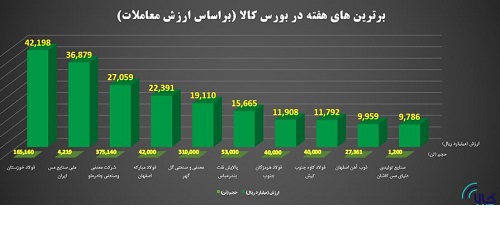 به گزارش فراسو، برترین های بورس کالای ایران درهفته منتهی به ۲۲ فروردین ماه براساس ارزش فروش شرکت ها در بازار فیزیکی به شرح زیر است: