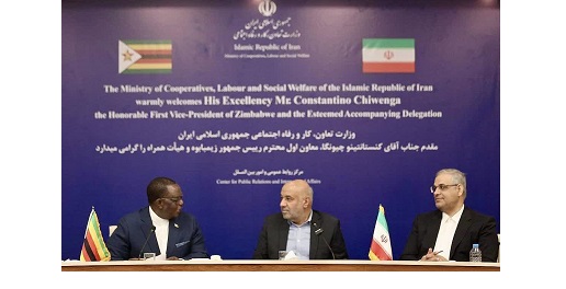 نشست مشترک هیأتهای همکاری ایران و زیمبابوه با حضور احمد میدری، وزیر تعاون، کار و رفاه اجتماعی ایران، و کنستانتینو چیونگا، معاون رئیسجمهور زیمبابوه، در تهران برگزار شد.