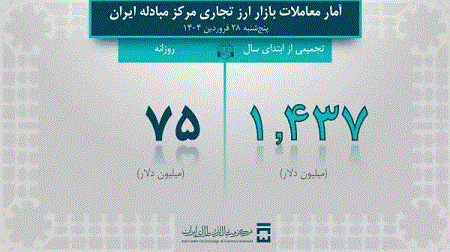 گفتنی است، از ابتدای سال جاری تا ۲۸ فروردینماه ۱۴۰۴، حجم کل معاملات بازار ارز تجاری مرکز مبادله ایران بر اساس ارزش دلاری، به یک میلیارد و ۴۳۷ میلیون دلار رسید.