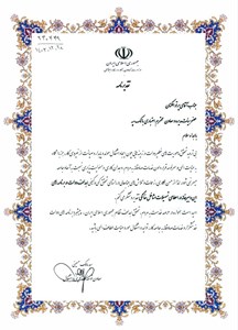 امید است همواره در عرصه خدمت به مردم، تحقق اهداف نظام جمهوری اسلامی ایران، پیشبرد برنامههای دولت خدمتگزار و خدمات صادقانه به جامعه کار، تولید و اشتغال مورد عنایت الطاف الهی باشید.»