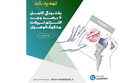 در راستای حمایت از مشتریان و تسهیل در بازپرداخت بدهیها، طرح ویژه بخشودگی ماندهی ۶ درصدی وجه التزام تسهیلات مشکوکالوصول موسسه اعتباری ملل تا پایان شهریور ۱۴۰۴ تمدید شد.