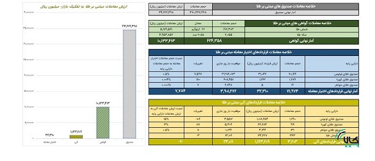 در روز دوم اردیبهشت ماه ۴۷۰ میلیون و ۳۲۷هزار واحد صندوق طلا معامله شد و ارزش معاملات صندوق های طلا به ۳.۴ همت رسید.
