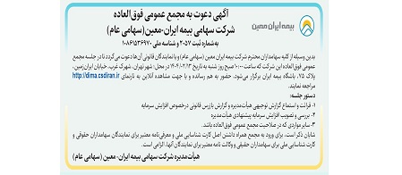 بیمه ایرانمعین با انتشار آگهی در روزنامه ایران، سهامداران خود را به مجمع عمومی فوق العاده افزایش سرمایه این شرکت که دوازدهمین مجمع افزایش سرمایه “معین” از زمان تأسیس است، دعوت کرد.