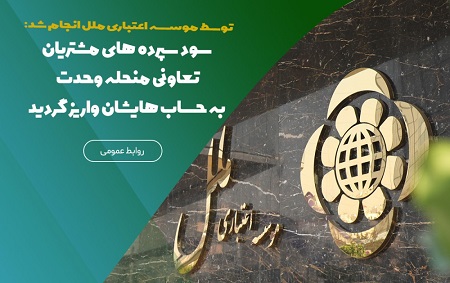 به گزارش فراسو به نقل از روابط عمومی موسسه اعتباری ملل، به موجب دستور صادره از سوی هیئت تصفیه تعاونی منحله وحدت و با توجه به فروش داراییهای مازاد تعاونی، نسبت به واریز سود سپرده به میزان مصوب اقدام گردید که این امر گامی بلند و مؤثر در خصوص تکریم سپردهگذاران میباشد.