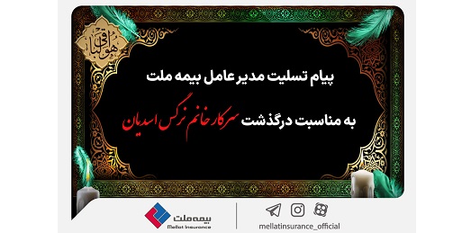 با نهایت تأسف و تأثر، درگذشت نابهنگام و غمانگیز سرکار خانم نرگس اسدیان، همکار پرتلاش، متعهد و خوشنام شرکت بیمه ملت، موجب اندوه عمیق اینجانب و تمامی همکارانم در مجموعه شد.