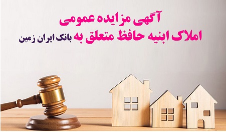 شرکت پشتیبانی و فروش ابنیه حافظ (سهامی خاص) به نمایندگی از بانک ایران زمین در نظر دارد املاک مازاد بانک را به شرح فایل پیوست با وضع موجود و به صورت نقدی از طریق مزایده عمومی به فروش برساند.