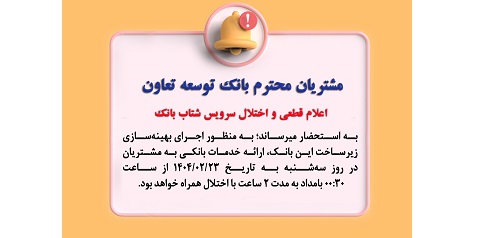سرویس شتاب بانک توسعه تعاون با قطعی موقت همراه خواهد بود.