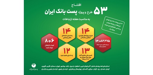 همزمان با ۲۷ اردیبهشت؛ روز جهانی ارتباطات، پست بانک ایران با هدف توسعه خدمات مالی، سرمایه گذاری و حمایت از تولید و توسعه دسترسی به خدمات و ارتقای زیرساختهای بانکی، ۵۳ طرح و پروژه جدید را در سراسر کشور به بهرهبرداری میرساند.