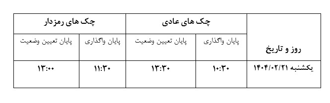 به گزارش فراسو به نقل از اداره کل روابط عمومی پست بانک ایران، اداره کل عملیات ریالی بانک مرکزی جمهوری اسلامی ایران با ارسال بخشنامه ۰۴/۴۰۸۰۴ مورخ ۱۴۰۴/۰۲/۲۰ به بانکهای و موسسات مالی کشور تغییر ساعت کار سامانه چکاوک از روز ۲۱ اردیبهشت تا اطلاع ثانوی را ابلاغ کرد.