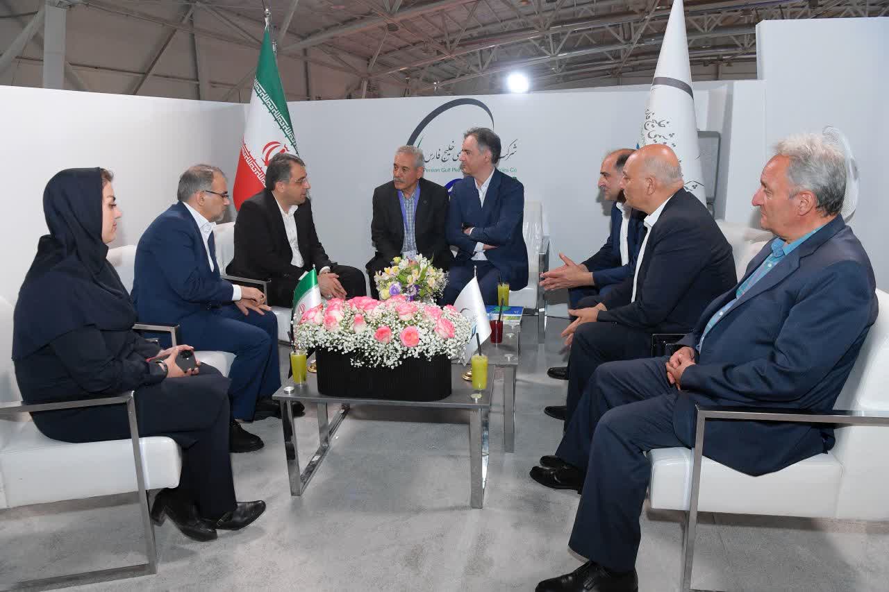 همچنین، مسئولان داخلی و هیاتهای تجاری اقتصادی متعددی از کشورهای خارجی اعم از چین، ترکیه و هند و اصحاب رسانه در غرفه هلدینگ خلیج فارس حضور یافتند.