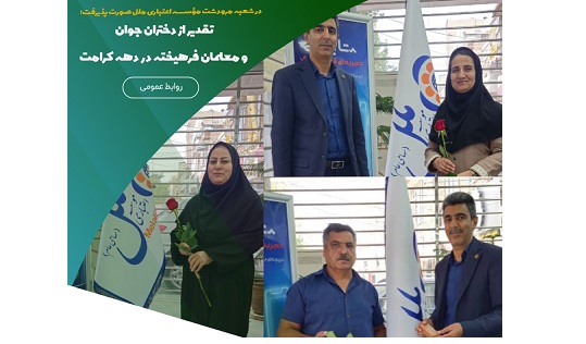 همزمان با فرا رسیدن دهه کرامت و ایام فرخنده ولادت حضرت فاطمه معصومه (س)، روز دختر و روز معلم، با برگزاری مراسمی در شعبه مرودشت مؤسسه اعتباری ملل ، دختران جوان و معلمان فرهیخته تقدیر شد.