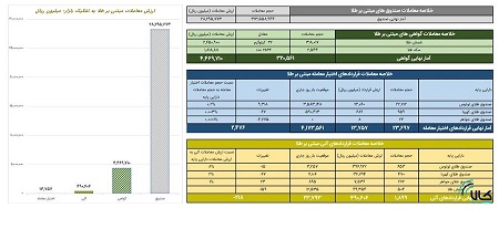 در معاملات روز گذشته بازار ابزارهای مبتنی بر طلای بورس کالای ایران بالغ بر ۳۱۳ میلیون واحد صندوق های مبتنی بر طلا به ارزش ۲.۸ همت معامله شد.
