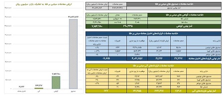 در قراردادهای اختیار معامله مبتنی بر طلا نیز ۲۷ هزار و ۳۶۷ قرارداد به ارزش حدود ۲.۱ میلیارد تومان دادوستد شد.
