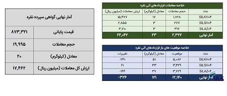 در روز ۳۰ اردیبهشت ماه در مجموع حدود ۴۳ کیلوگرم شمش نقره در بازار گواهی سپرده و قرارداد آتی مورد معامله قرار گرفت.