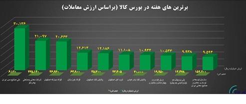 به گزارش فراسو، برترین های بورس کالای ایران درهفته منتهی به ۱۹ اردیبهشت ماه براساس ارزش فروش شرکت ها در بازار فیزیکی به شرح زیر است:
