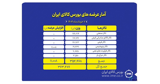تالارهای بورس کالای ایران امروز چهارشنبه ۷ خرداد ماه میزبان عرضه ۳۶۳ هزار و ۴۷۶ تن انواع محصول است.