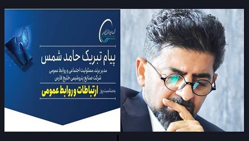حامد شمس مدیر برند، مسئولیت اجتماعی و روابط عمومی شرکت صنایع پتروشیمی خلیج فارس در پیامی ۲۷ اردیبهشت روز ارتباطات و روابط عمومی را گرامی داشت و تلاشها و ابتکارات همکاران خود در حوزه رسانه و روابط عمومی را ارج نهاد.