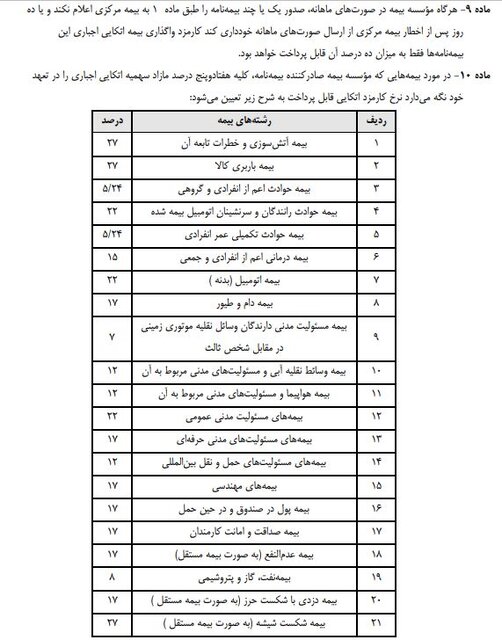 گفتنی است؛ در مهر ماه سال ۱۳۹۱ شورای عالی بیمه در اجرای ماده ۷۲ قانون تاسیس بیمه مرکزی ایران و بیمهگری، آییننامه نحوه واگذاری بیمههای اتکایی اجباری و میزان کارمزد و مشارکت در سود آن را مشتمل بر ۲۰ ماده و ۱۱ تبصره، وضع کرد که به آیین نامه شماره ۷۶ معروف است که جزئیات آن در ذیل آمده است./ایسنا