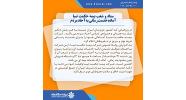 گفتنی است ، شرکت بیمه حکمت صبا وظیفه خود می داند با ارائه خدمات مناسب به مردم شریف ایران از هیچ کوششی در جهت امنیت خاطر و سلامت هم وطنان عزیز دریغ نکند.