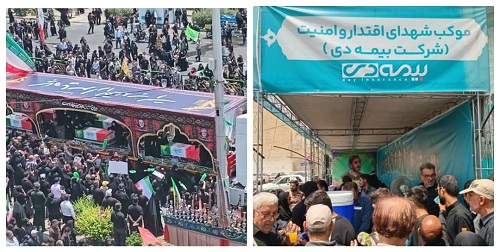 شرکت بیمه دی در مسیر تشییع میلیونی شهدای جنگ تحمیلی در خیابان آزادی جنب متروی استاد معین موکبی برای خدمات به تشییع کنندگان فرماندهان و دانشمندان هسته ای شهید برپا کرد.