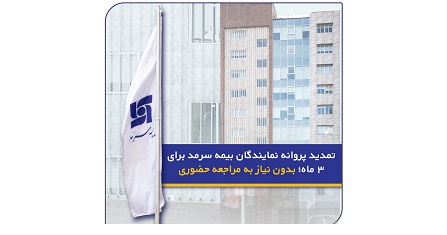 با توجه به شرایط خاص کشور و به منظور تسهیل امور نمایندگان، با مساعدت معاونت بازاریابی و شبکه فروش، پروانه فعالیت تمامی نمایندگان شرکت بیمه سرمد، به صورت خودکار و بدون نیاز به مراجعه حضوری، برای مدت سه ماه تمدید شد.