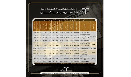 در جدول زیر مشروح عملکرد صندوقهای سرمایهگذاری تحت مدیریت شرکت تأمین سرمایه تمدن را مشاهده میکنید.